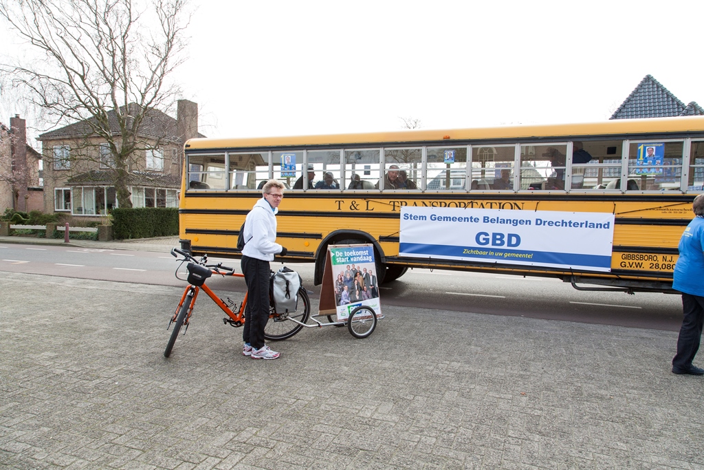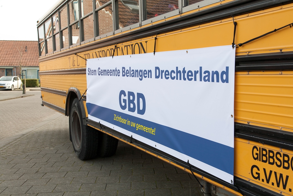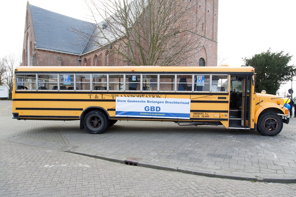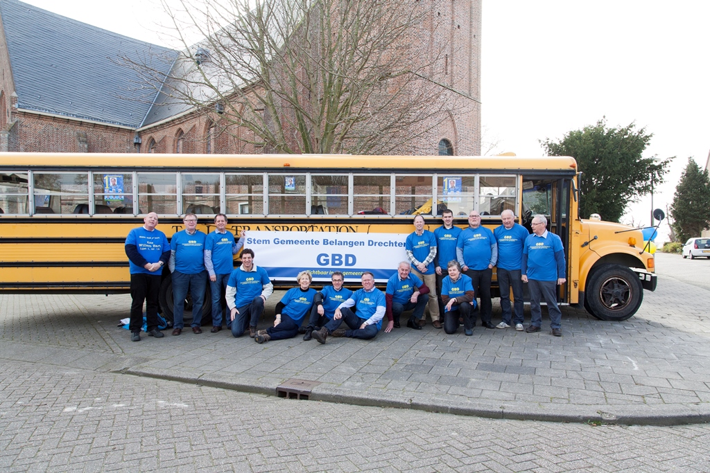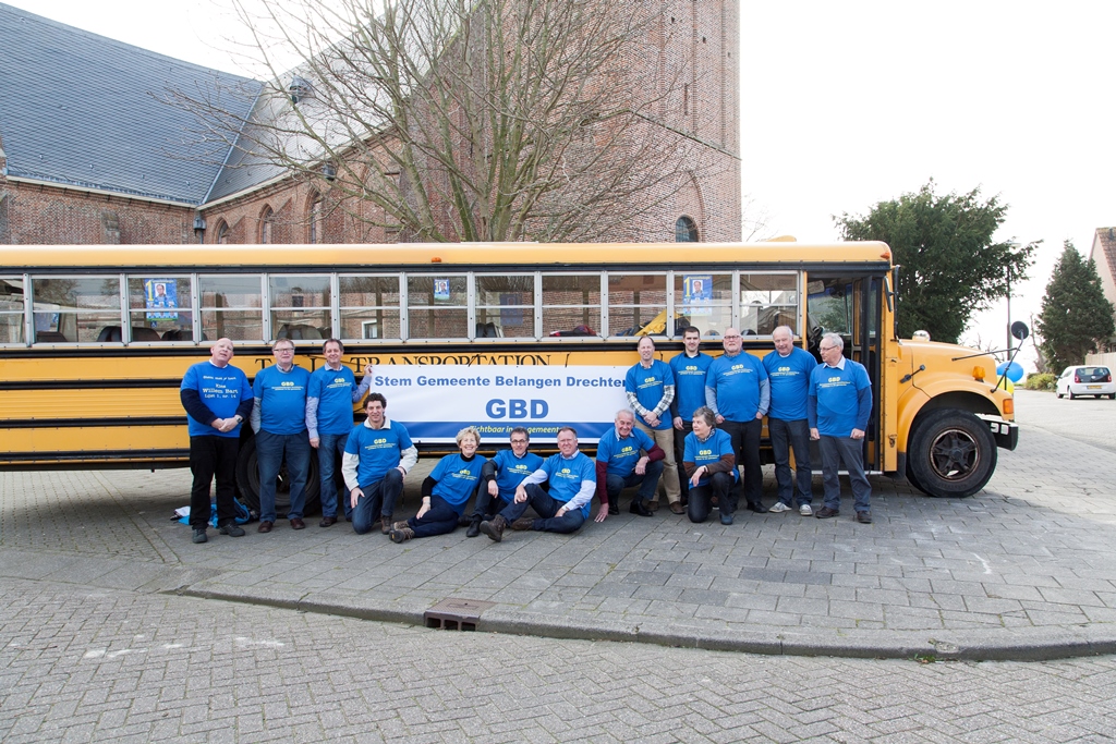 Zaterdag 15 maart was het voltallige bestuur en de fractie van Gemeentebelangen Drechterland bij elkaar gekomen om met een mooie en opvallende gele schoolbus door de gemeente te gaan om folders te verspreiden voor de aanstaande gemeenteraadsverkiezingen.